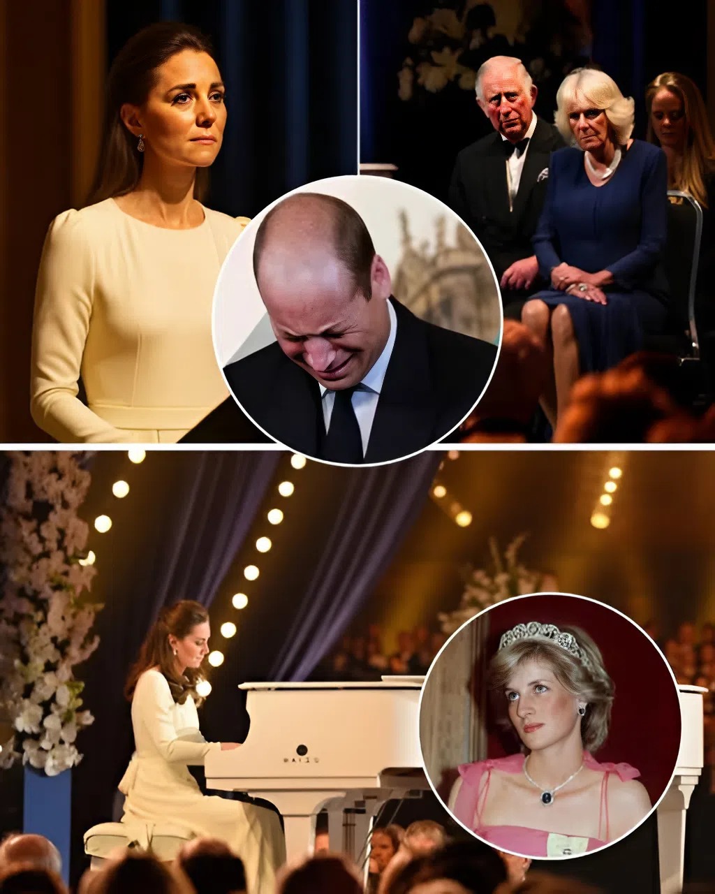 Prince William bowed his head, his hands clasped tightly, his eyes closed as if he was hearing his mother’s voice instead of the piano.